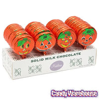 Display box contains 24 Foiled Milk Chocolate Pumpkin Pops, each with a net weight of 1 ounce.