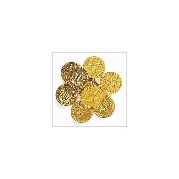 Bag contains 5 pounds of gold-foil-wrapped Milk Chocolate Coins Candy.