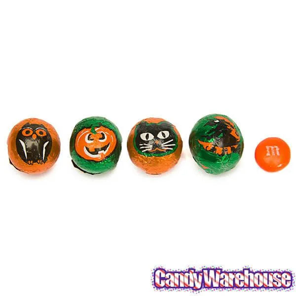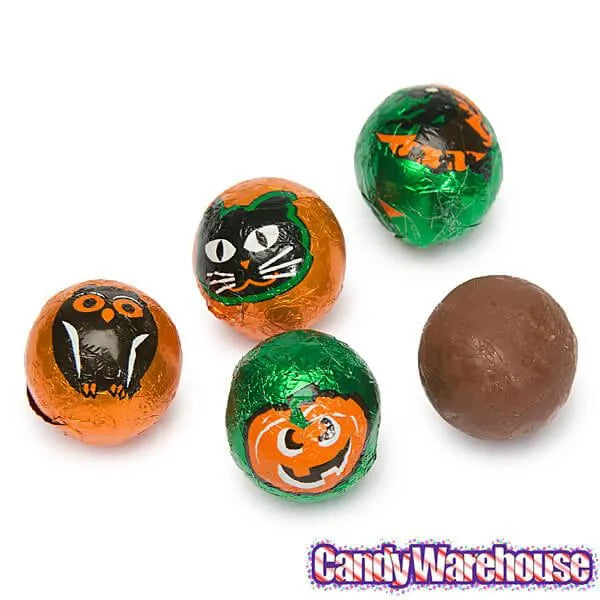Black cats, witches, owls, pumpkins, and other spooky Halloween images en-wrap these gourmet milk chocolate balls!
