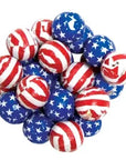 Bag contains 5 pounds of Patriotic USA Stars & Stripes Foiled Milk Chocolate Balls Candy.