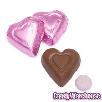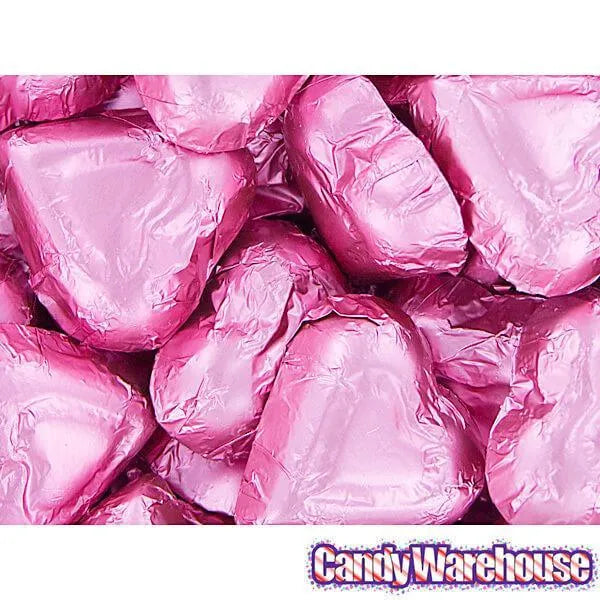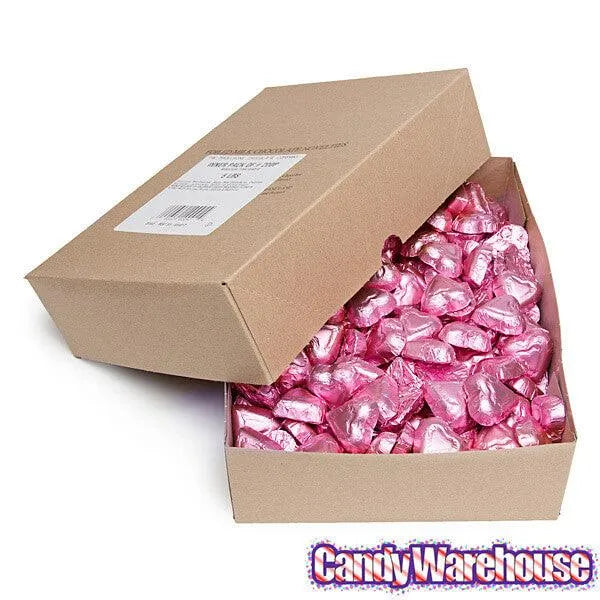 Box contains 5 pounds of Pink Foiled Milk Chocolate Hearts Candy.