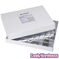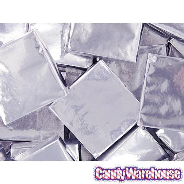 Box contains 5 pounds of Silver Foil Wrapped Truffle Mint Chocolate Squares.