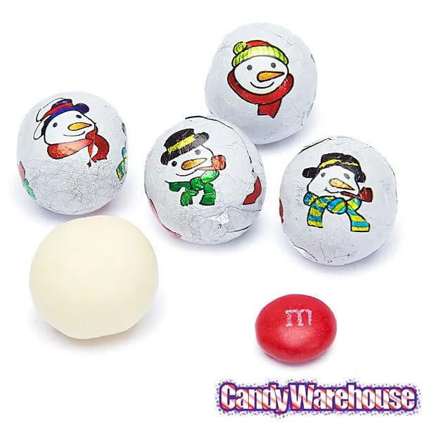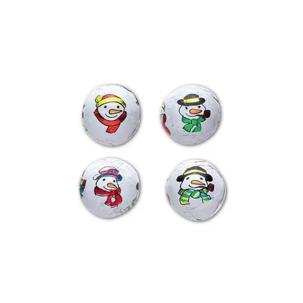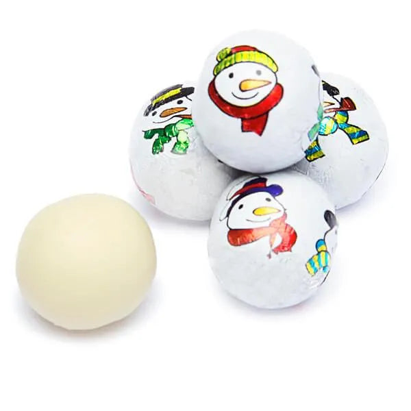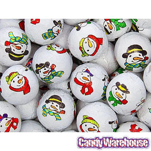 Bag contains 5 pounds of Snowmen Foiled White Chocolate Balls Candy.