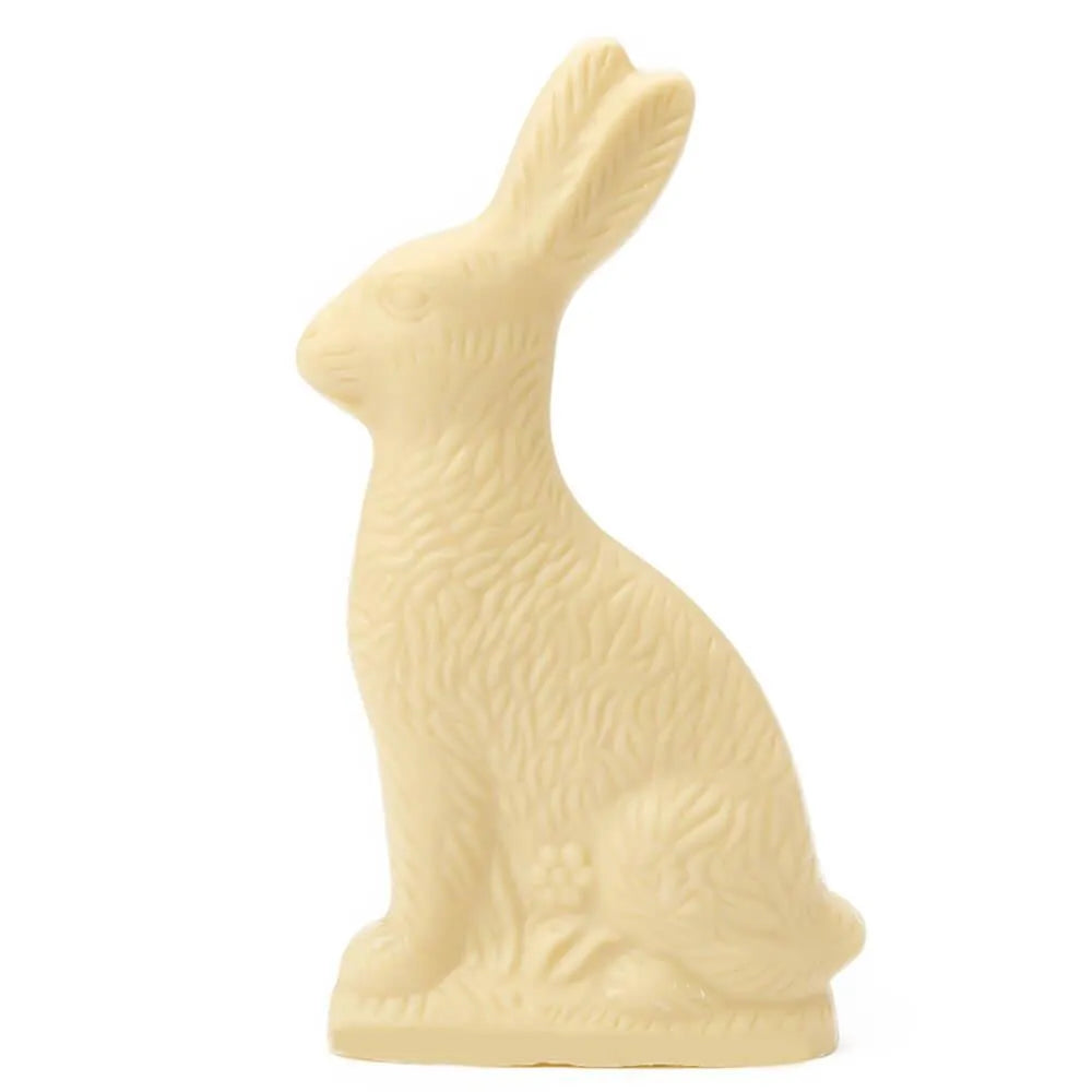 Bag contains 1 15-Ounce Solid White Chocolate Sitting Easter Bunny.