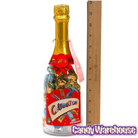 Plastic champagne bottle contains 10.9 ounces of Mars Celebrations Chocolate Candy.