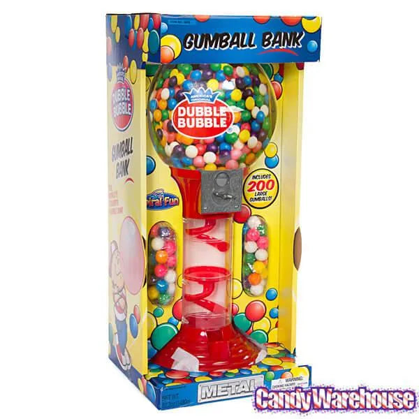 Machine comes with 200 pieces of Dubble Bubble 1-inch, assorted color gumballs.