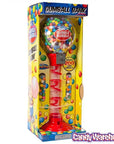 Throughout the years, these machines have evolved into many shapes and sizes, but the most important characteristic hasn’t changed: they always dispense round, delicious, chewy gumballs! This fun, metal spiral gumball bank stands three feet tall, with a clear plastic globe through which to view the gumball selection, and a clear base to watch as the round candy rolls down colorful plastic spirals! As they say, getting there is half the fun -- well, so is watching traveling gum!