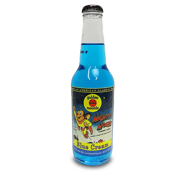 Here he comes to save the day! Say goodbye to boring beverages with Mighty Mouse Blue Cream Soda—a heroic blend of sweet, creamy vanilla flavor and a vibrant electric blue hue. This refreshing craft soda is as bold and fun as the legendary cartoon mouse himself. Whether you're a fan of vintage characters or just love a good blue cream soda, this one’s sure to be a super hit!