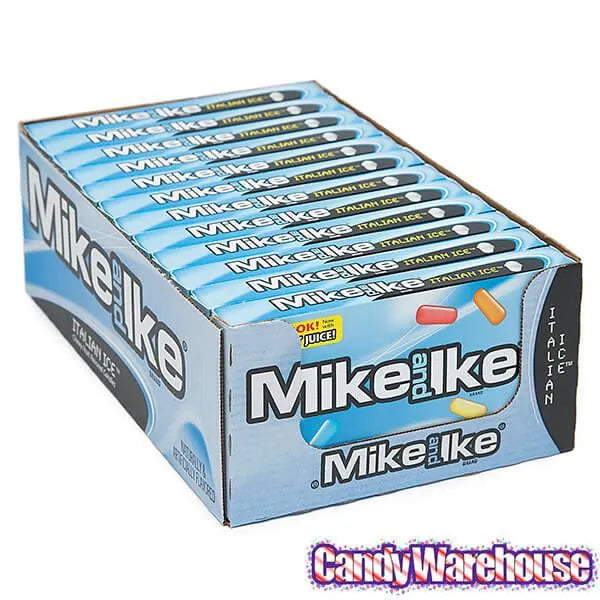 Box contains 12 Mike & Ike Italian Ice Candy Theater Packs, each with a net weight of 5 ounces.