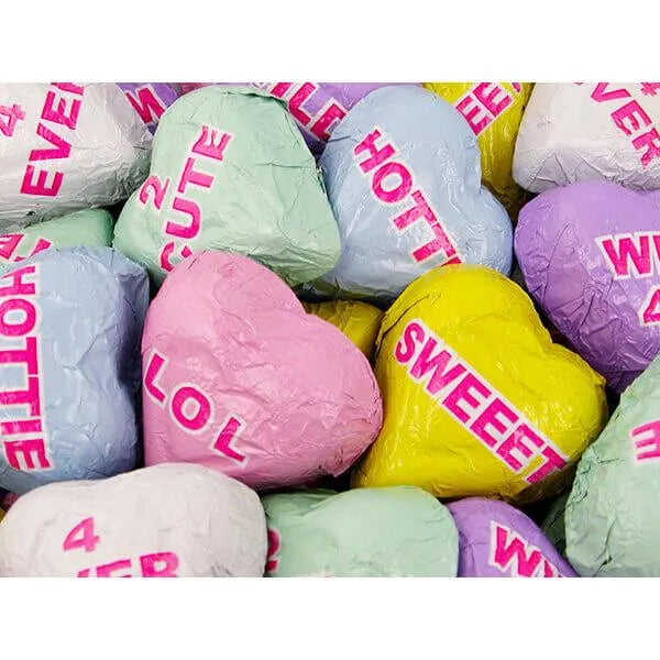 Foiled Conversation Milk Chocolate Candy Hearts: 4LB Bag
