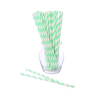 Bag contains 25 Mint Green Striped Paper Drinking Straws.