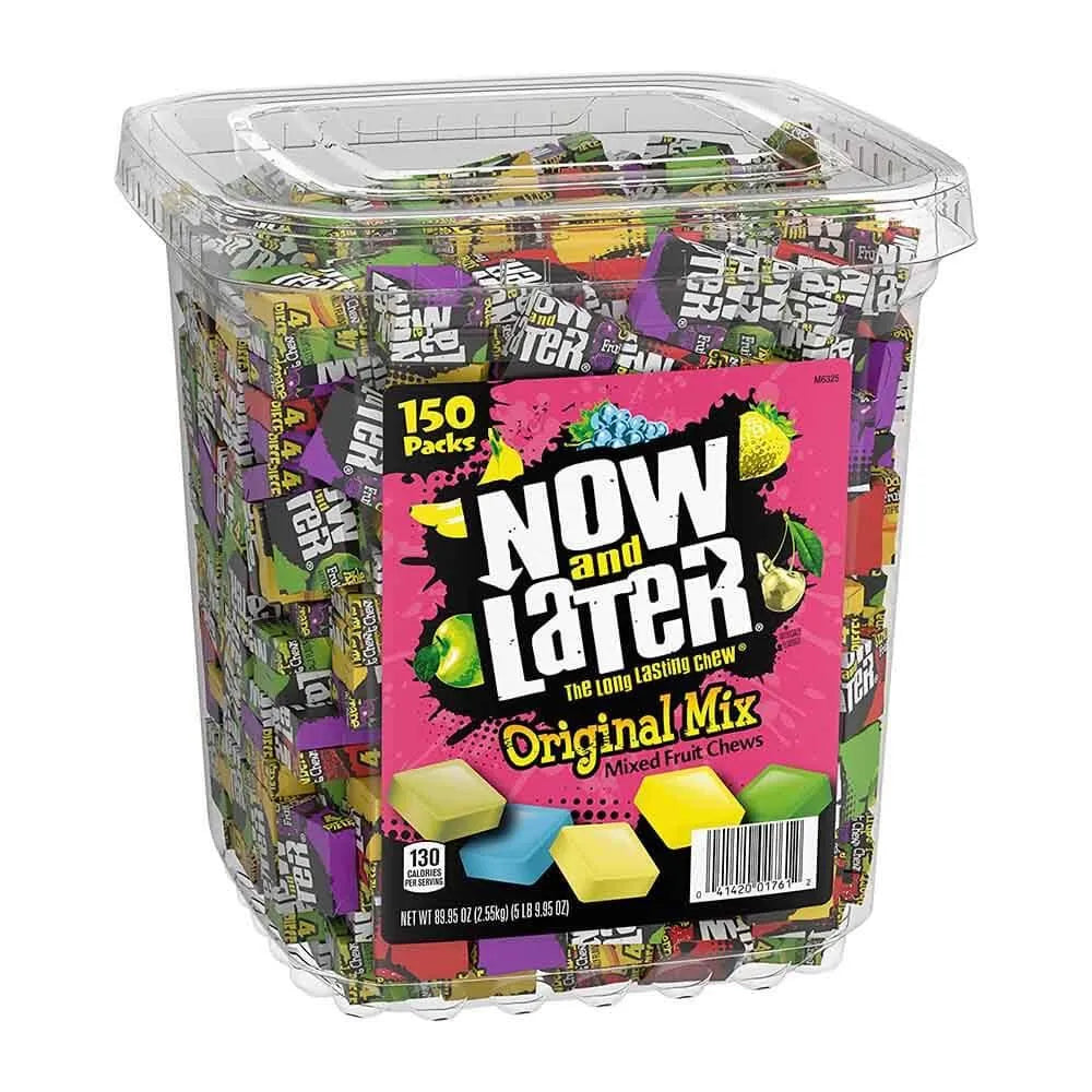 Tub contains 150 Now and Later Classic Fruit Chews Mini Bars.