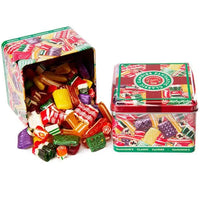 An amazing hand-packed tin of 10 different pieces, including holiday ribbons, cut rock, ovals, candy pillows, waffle squares and more! Flavors include a multitude of fruits and spices. All pieces are solid...no fillings. A wonderful holiday tradition in a beautiful gift tin!
