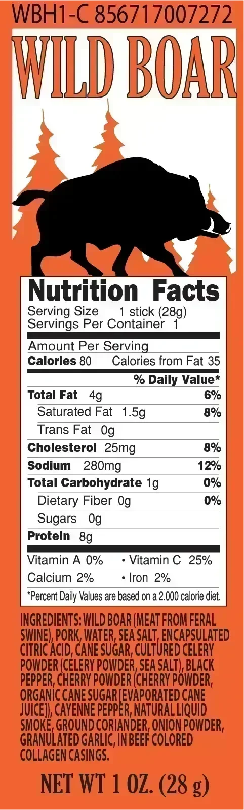 - 6 Wild Boar Hickory Snack Sticks