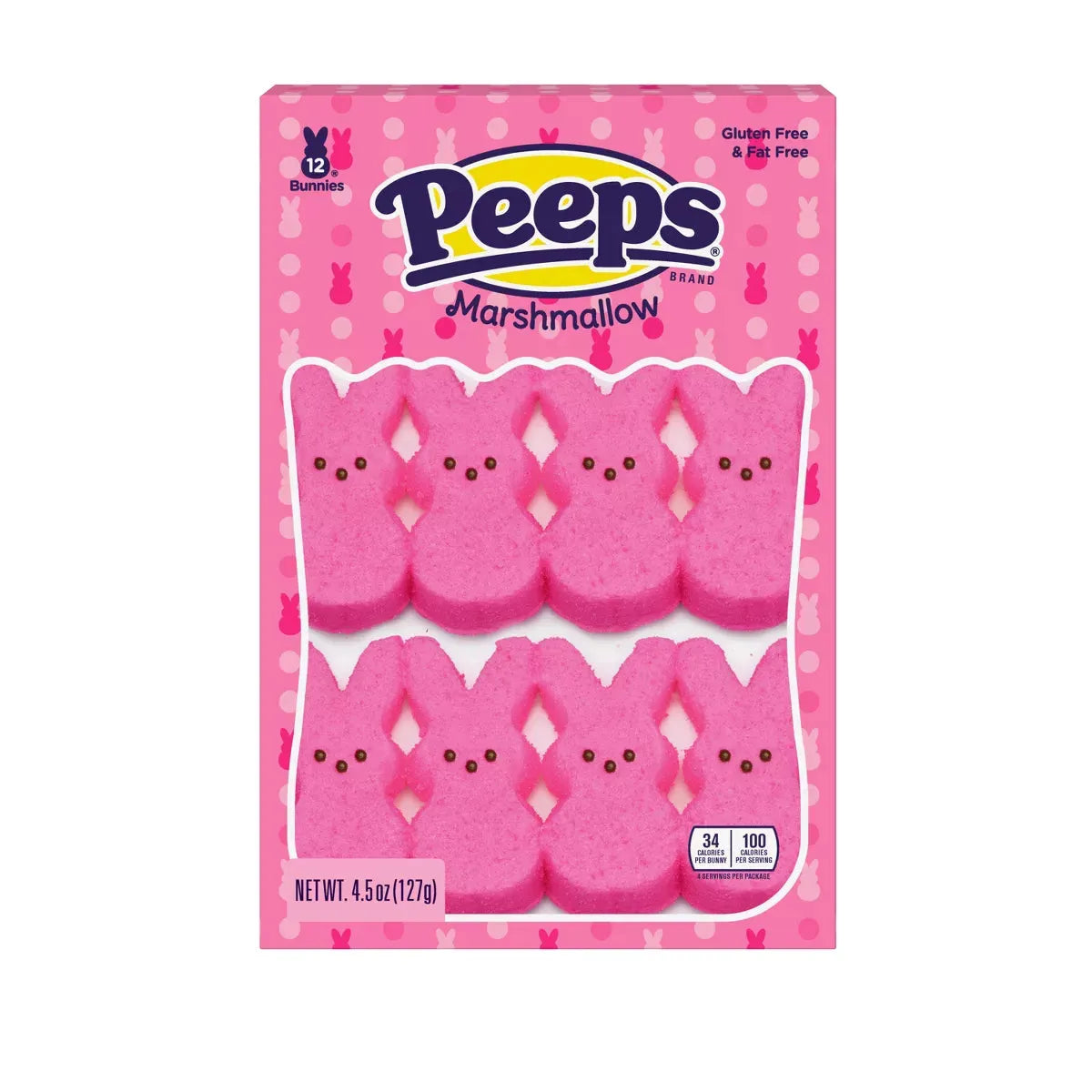 Pack contains 12 Pink Peeps Marshmallow Bunnies.
