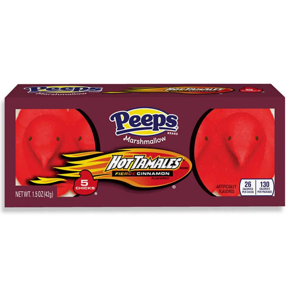 Pack contains 5 Hot Tamales Fierce Cinnamon Peeps Marshmallow Chicks.