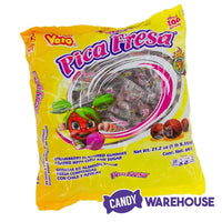 Chicle de almidon chiloso cubierto con chile y azucar con sabor a fresa! 225 pedasos por bolsa. Importado desde Mexico.