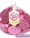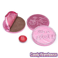 Bag contains 1 pound of Pink Foiled Baby Girl Chocolate Coins Candy... that's about 65 pieces.