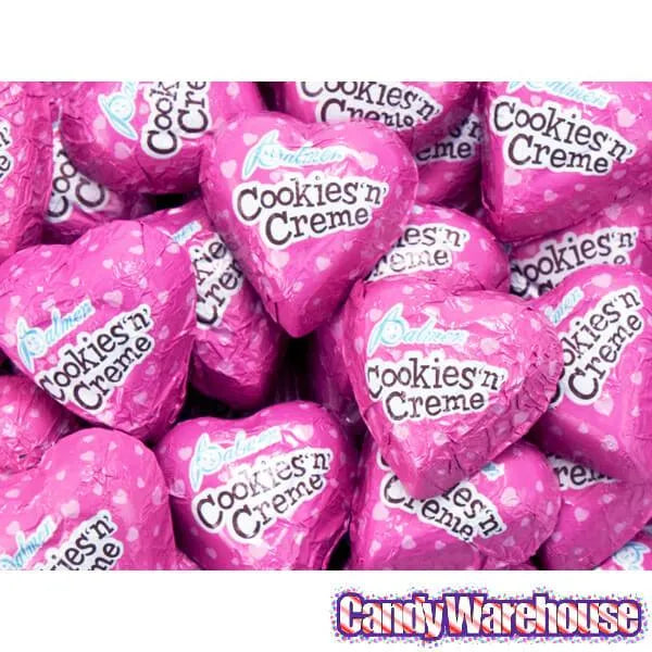 Palmer Pink Foiled Cookies 'n Cream Chocolate Hearts Candy: 4LB Bag