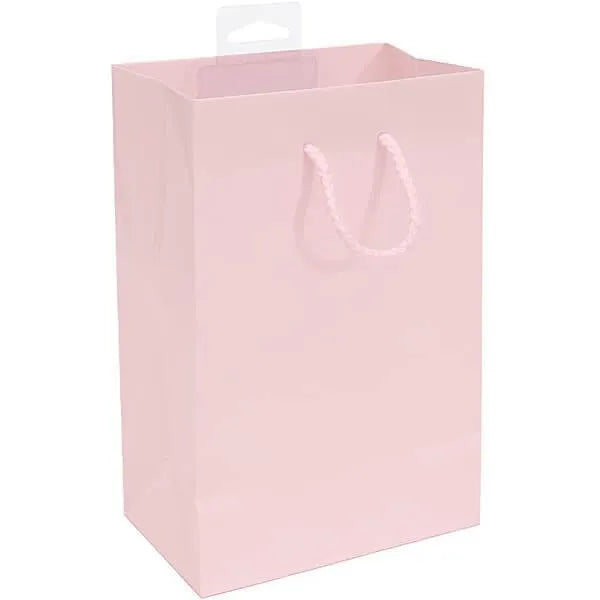 Pack contains 12 Glossy Pink Candy Bags with Handles.