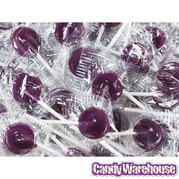 Bag contains 5 pounds of Purple Grape Lollipops.