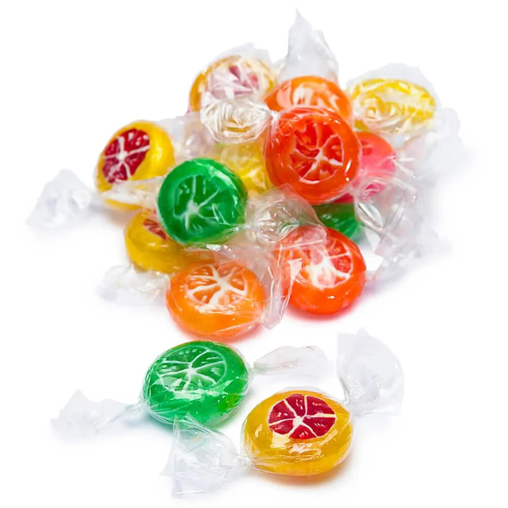 Bag contains 5 pounds of wrapped candy Sour Citrus Slices Candy Cuts.