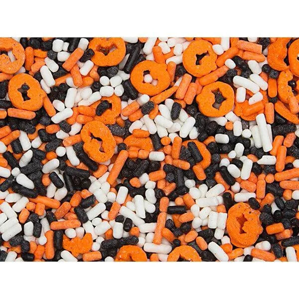 Make your Halloween cakes and cupcakes extra spooky with these festive sprinkles. The black and white jimmies mixed with tiny orange pumpkin candies add creepy-crawly creativity to any baked good! Packaged in a plastic bottle for convenient pouring and storing.