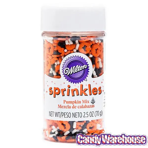 Dispenser bottle contains 2.5 ounces of Pumpkin Mix Halloween Sprinkles.
