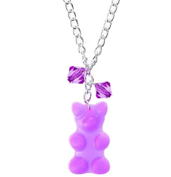 You’re probably familiar with candy necklaces -- those yummy sweets on a string you can wear around your neck. And while they’re a neat addition to apparel, let’s face facts: their existence as a fashion accessory isn’t very long-lived. So get ready to meet something even better! This fancy necklace comes on a silver chain and features two translucent jewels and a giant gummy bear in an adorable shade of grape purple. Soft and squishy, this bear looks and feels good enough to eat! Unfortunately, you can’t -- it’s made of rubber. On the bright side, this charm’s lack of edibility means that you won’t be tempted to snack on your jewelry, and thus it’s longevity as a delightful necklace is assured! Show off your sweet side with sugar-inspired trinkets that you can wear over and over again.
