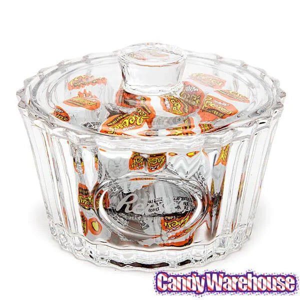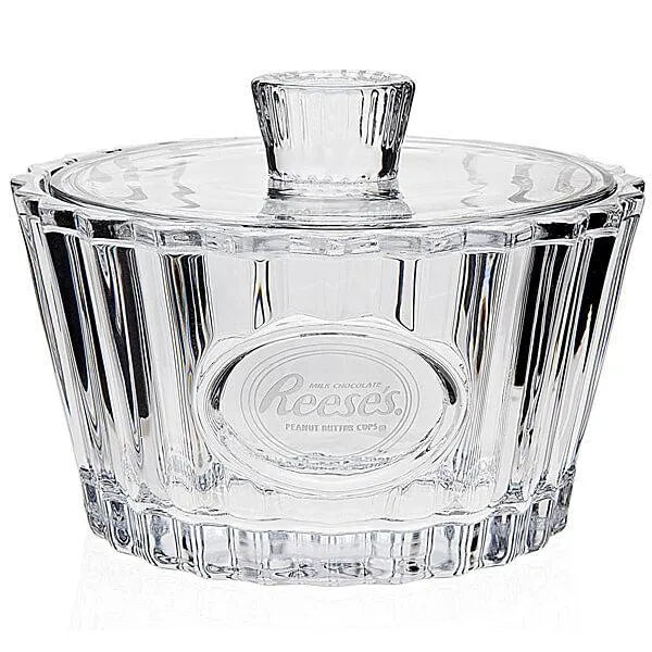 This stylized crystal clear glass candy dish featuring the Reese's logo will hold all of your favorite treats!