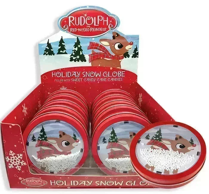 Rudolph Snow Globe Holiday Tin Candy: 12-Piece Display