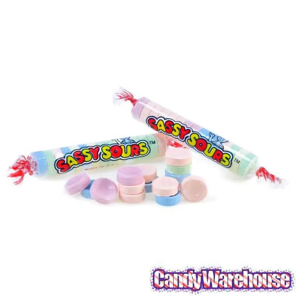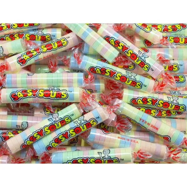 Bag contains 5 pounds of Sassy Sours Sweet Tarts Candy Rolls.