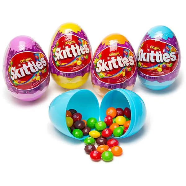 Original flavor Skittles are packed into colorful plastic eggs to create the perfect Easter candy treats.... perfect for Easter egg hunts or Easter baskets.