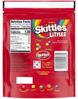 Big flavor comes in tiny bites with SKITTLES LITTLES Original! This 7.2-ounce resealable bag is packed with the classic fruity flavors of strawberry, lime, grape, lemon, and orange, now in an irresistibly mini form. Perfect for on-the-go snacking, movie nights, game days, or road trips, these mighty little candies bring the party to your taste buds—no RSVP required! Whether you're sharing with friends or keeping them all to yourself, SKITTLES LITTLES are your ultimate bite-sized adventure. Grab a bag and taste the tiny rainbow today!