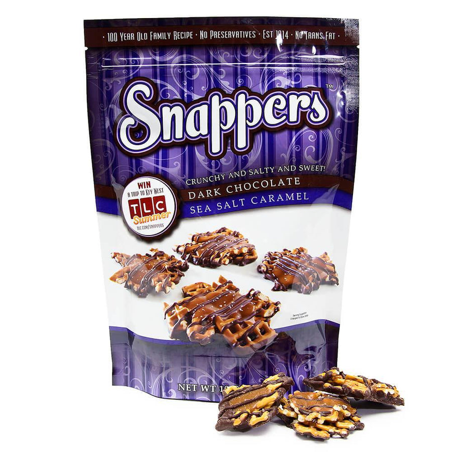 Snappers Dark Chocolate Sea Salt Caramel Pretzels: 10-Ounce Bag