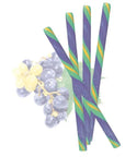 Perky sour grape flavors burst from these gourmet hard candy sticks featuring twirled colors of blue and green!
