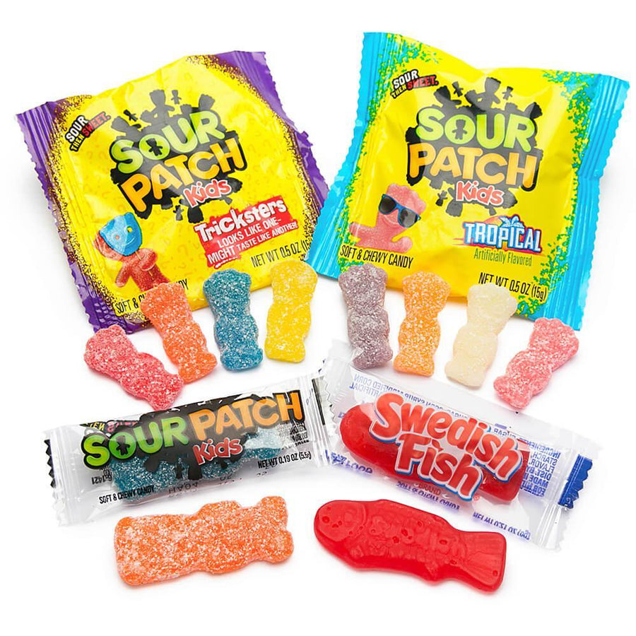 Sour Patch Kids and Swedish Fish Candy Packs Assortment: 200-Piece Bag