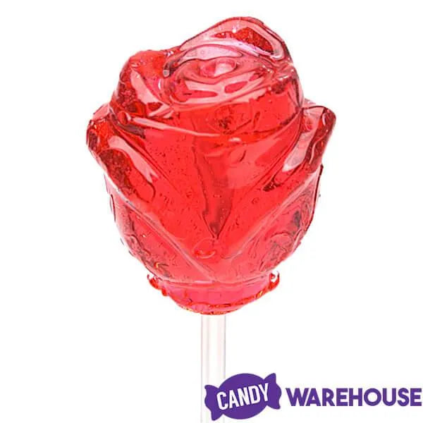 Bag contains 100 Assorted Colors 3-D Hard Candy Rose Lollipops.