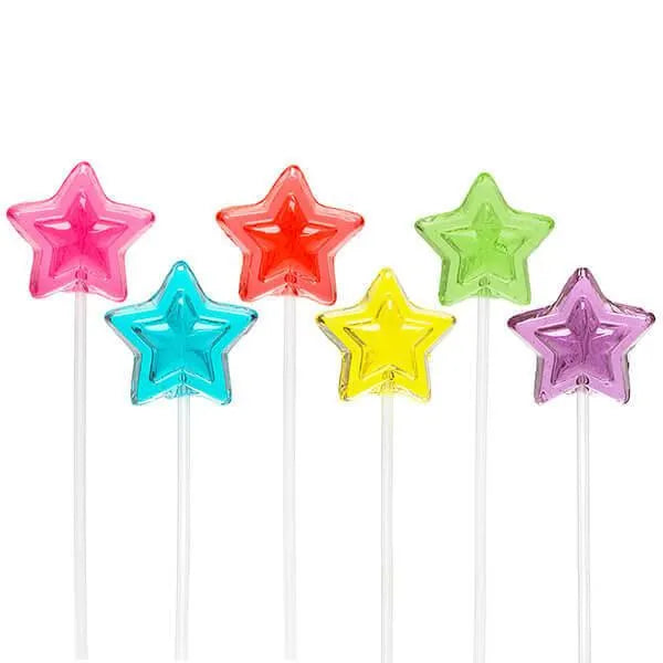 Bag contains 100 Assorted Colors Star-Shaped Hard Candy Lollipops.