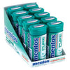 Display box contains 10 Spearmint Mentos Pure Fresh Sugar Free Chewing Gum Dispensers, each with 15 pieces.