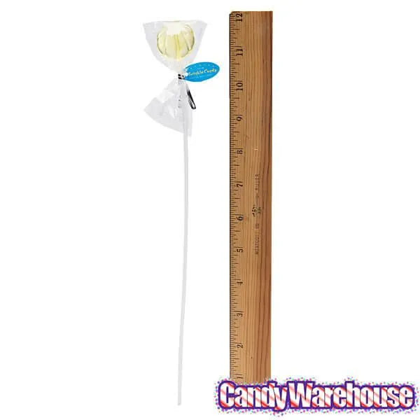 Hut, hut . . . hike! It’s time for sports on a stick! These colorful, fruity-sweet sports lollipops are shaped like baseballs, basketballs, soccer balls, and footballs. They come on long, flexible sticks for easy arranging and fun eatin’! Great for decorating a championship table or stuffing into trophies at sports related events, the total length of these lollipops is about 12 inches and each piece is individually wrapped with cellophane.