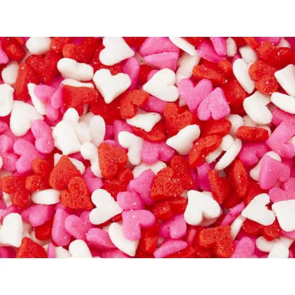 Dainty and delicious, these tiny candy hearts sprinkles feature an assortment of Valentine's Day colors: red, white, and pink. The perfect accent for cupcakes, sugar cookies, donuts, and cakes!