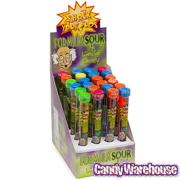 Display box contains 24 test tubes of Formula Sour Liquid Candy.