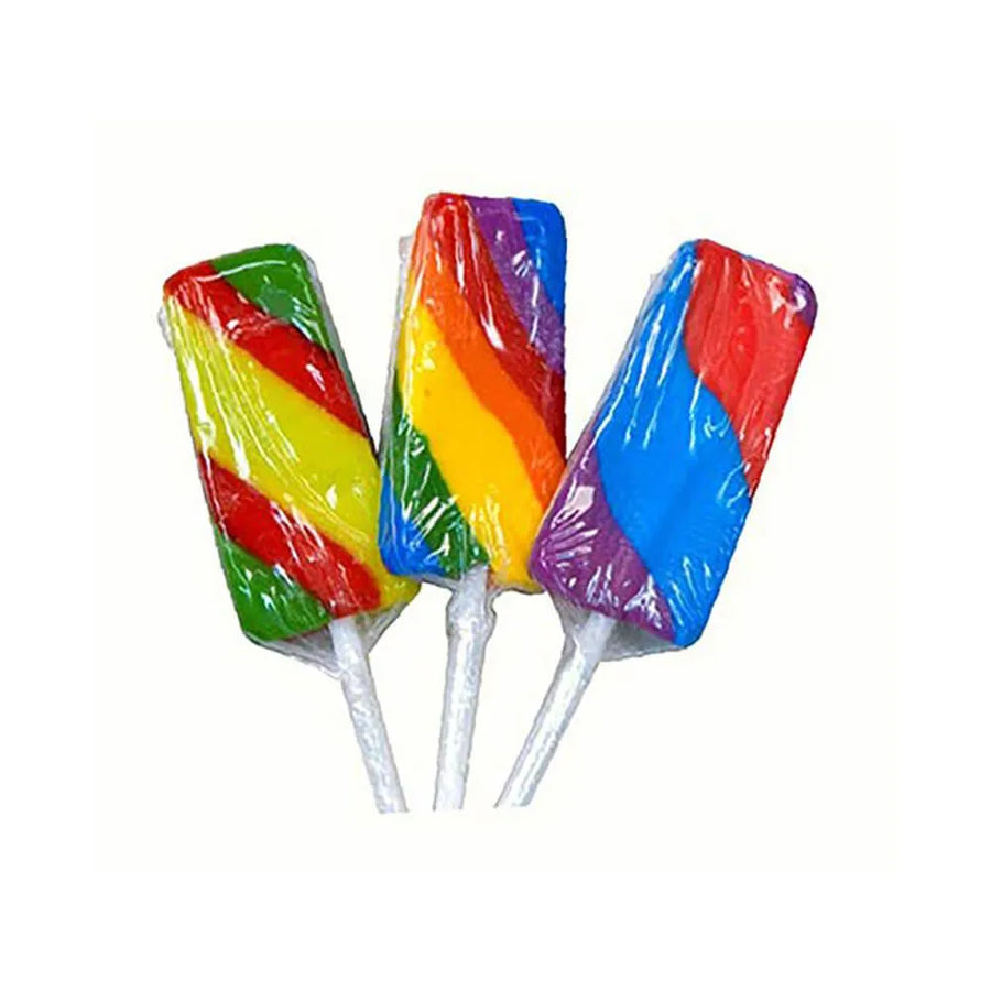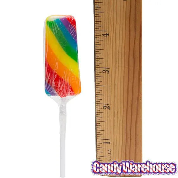 Open up and say "Aaahhh" to these miniature paddle-shaped lollipops.... about the size of a doctor's tongue depressor. These fun hard candy lollipops feature twisting colors in an assortment of 3 designs and 3 fabulous flavors: Rainbow Cherry, Blue Raspberry, and Watermelon Patch.