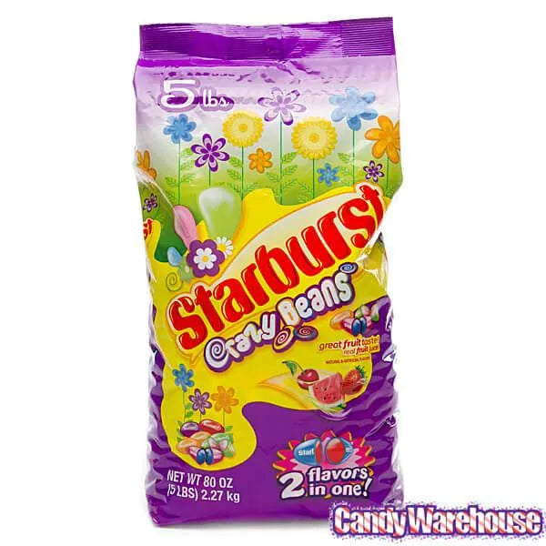 Bag contains 5 pounds of dual-flavored Starburst Crazy Beans Candy.