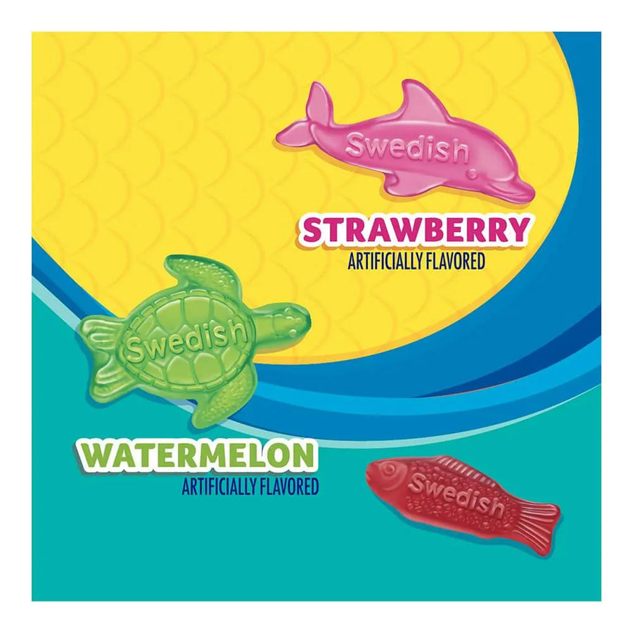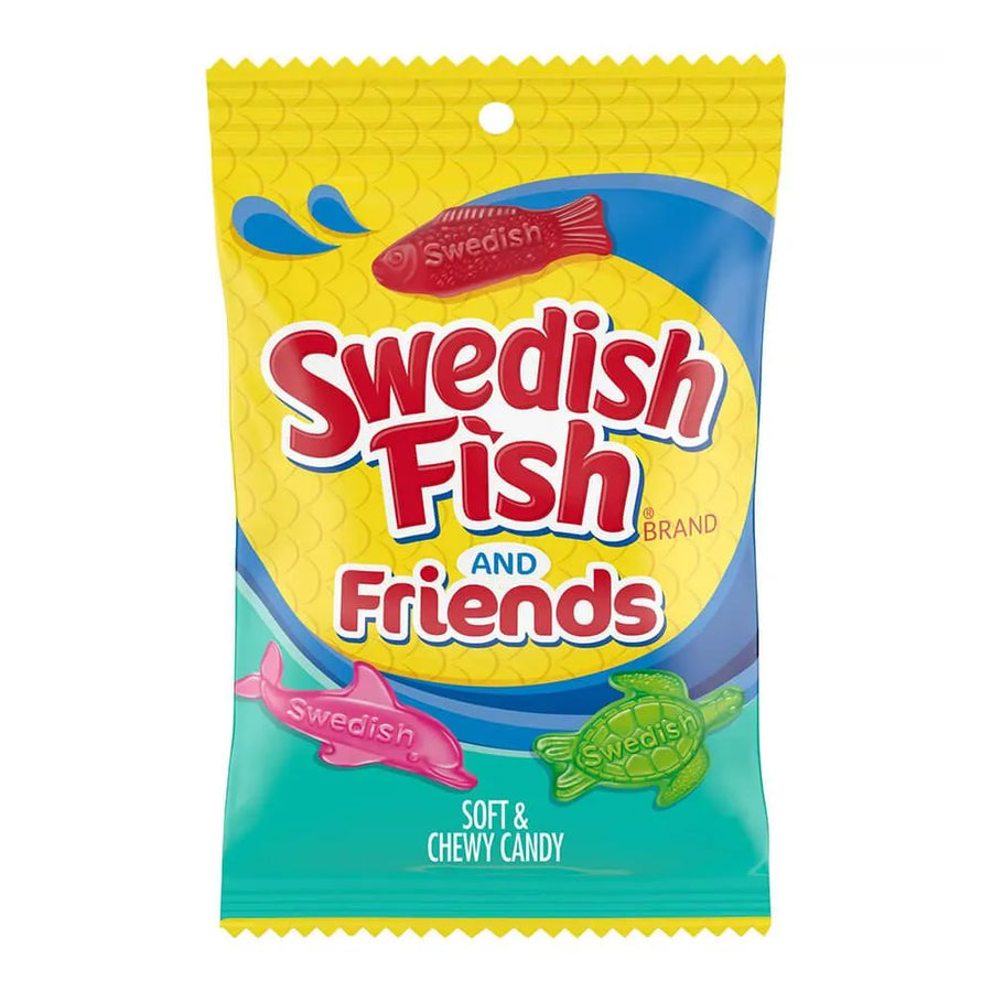 Case contains 12 Swedish Fish and Friends Candy Bags, each with a net weight of 8.04 ounces.