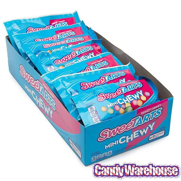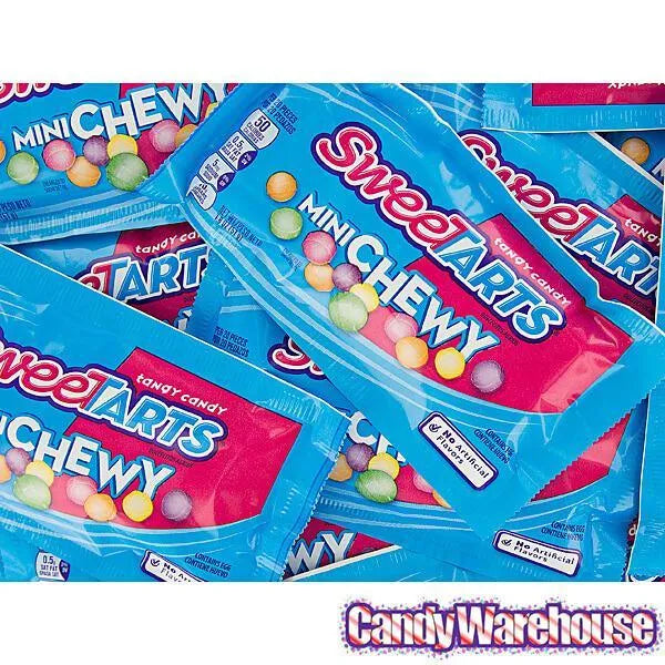 Display box contains 24 SweeTarts Mini Chewy Candy Packs, each with a net weight of 1.8 ounces.