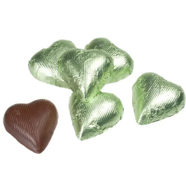 Foiled Milk Chocolate Hearts - Leaf Green: 2LB Bag