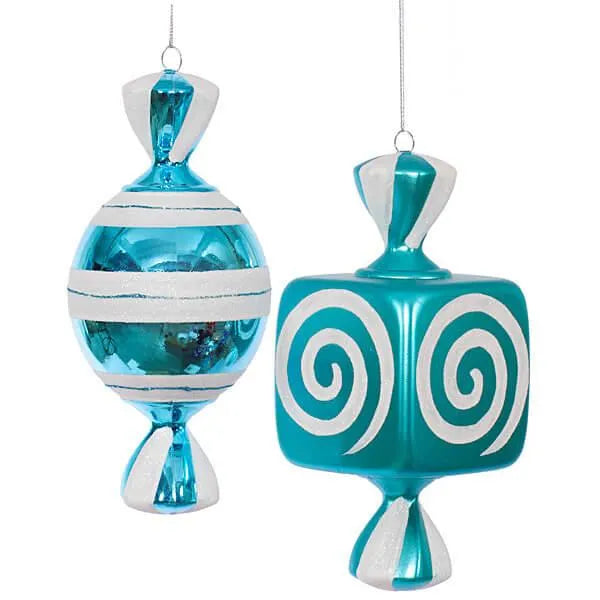 Teal Blue Large Candy Ornaments - 8 Inch: 2-Piece Box