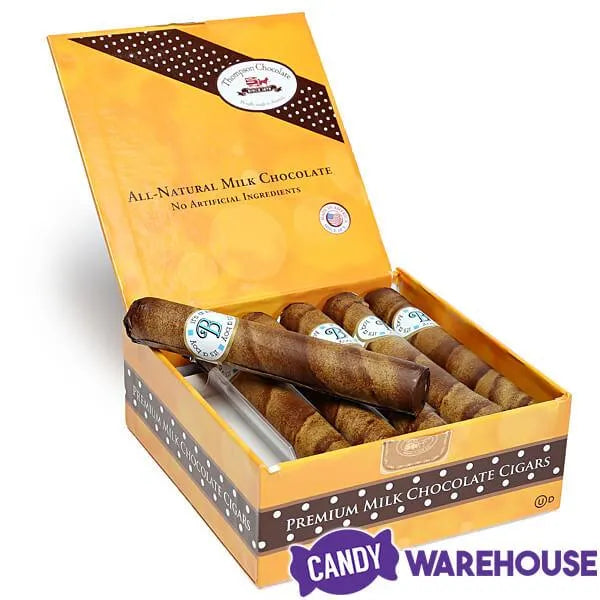 Each semi-solid milk chocolate cigar is approximately 5.5 inches long with a diameter of 1 inch.